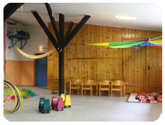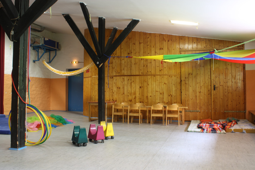 Bei gutem Wetter kann draußen auf dem Spielplatz getobt werden, bei schlechtem Wetter steht der Toberaum zur Verfügung. Leitungswasser steht während der ganzen Zeit für die Kinder bereit.