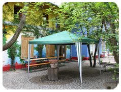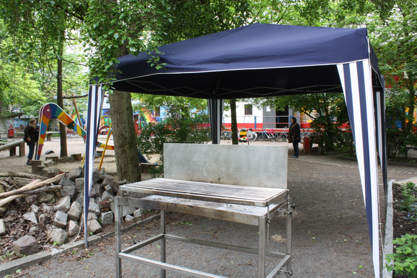 Weiterhin gibt es einen großen Innenhof, auf dem sich neben dem Spielplatz auch Grillstation und Raucherecke befinden. Pavillions bieten hier auch bei Regen Schutz. Auf dem Spielplatz können sich die Kleinen bei gutem Wetter amüsieren.