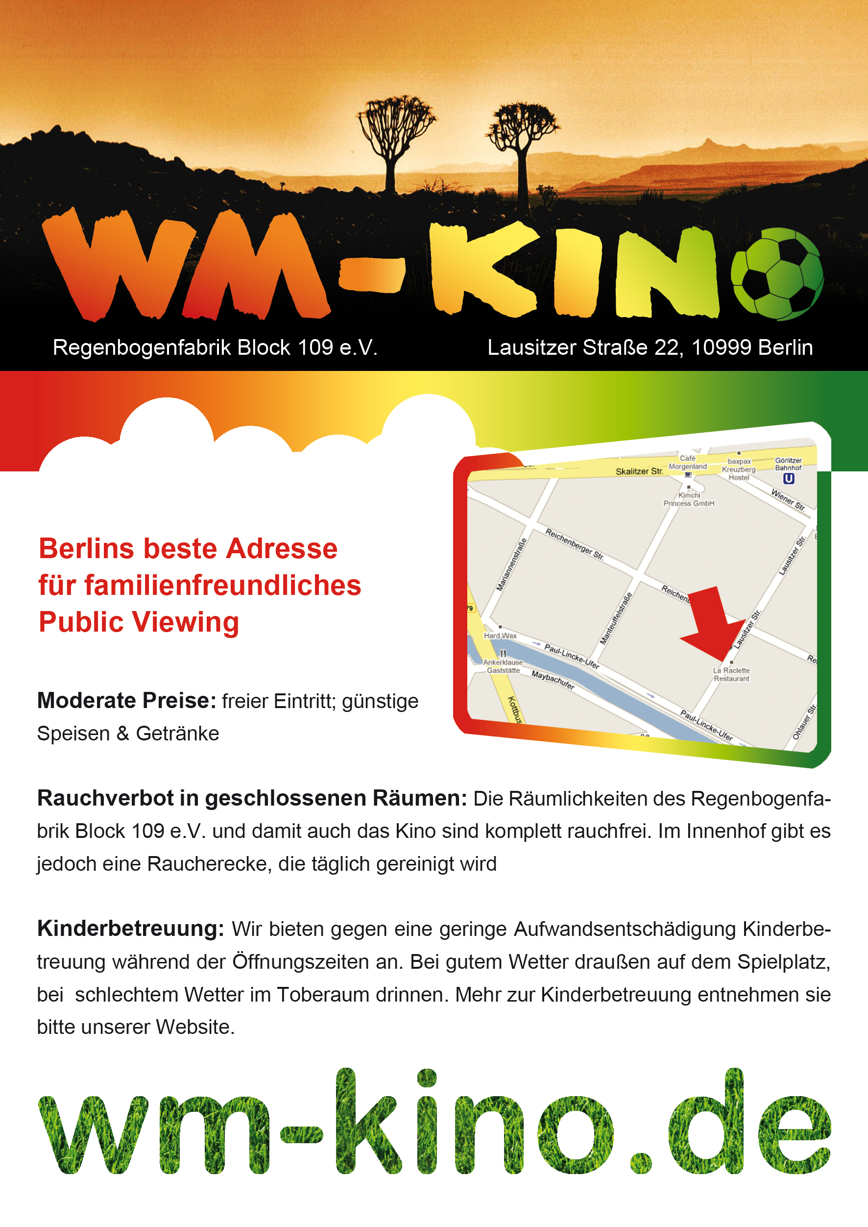 Wir freuen uns auf Sie im WM-Kino der Regenbogenfabrik Block 109 e.V. – im Herzen Kreuzbergs!